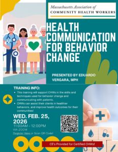 Our Health Communications for Behavior Change Training will help CHWs build connection and support for their clients in healthy behavior change. We will share strategies, frameworks, and learn more about what motivates clients internally and externally to result in changes that can help them live happier, healthier lives.