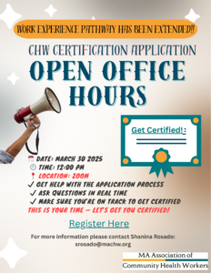 Join us for our monthly CHW Certification Assistance Office Hours!