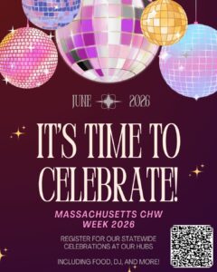 Are you a Springfield/Western Mass CHW? Join us during Massachusetts CHW Week for our Worcester CHW Hub Celebration! We will have food, DJ, photo ops, and most importantly, connecting with other fellow CHWs and celebrating all the AMAZING work CHWs do to advance health equity.